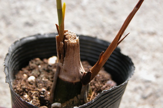 自從在泰國看到販賣苞舌蘭的假球莖,就幻想它能和一葉蘭一樣變成球根蘭花。我把苞舌蘭開過花的假球莖挖起,剪去根和葉,陰乾2-3天後,種植在盆裡。過一些時間,在假球莖周圍就會長出新芽來,但這種常綠型苞舌蘭和泰國賣的落葉型假球莖不一樣,可能較難貯藏。