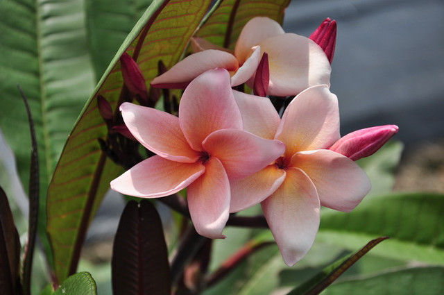 其實其他花卉也是一樣,花朵顏色和形狀也會隨不同季節或栽培地點有所不同,之前我有介紹重瓣的雞蛋花品種Bali Whirl,最近開花和之前大不同,之前花瓣分離,現在開的花瓣合起來,更像重瓣的花。另外之前我介紹國內的2號紅花品種,原本母株可能感染病毒,造成花朵有更紅的嵌紋,但也可能是突變株,除花朵外植株都正常,之前有向我買2號枝條的朋友,注意可能會開出這種嵌紋的花朵。