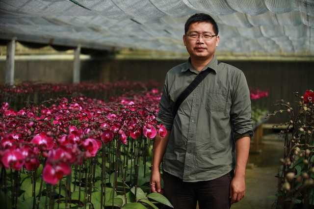 周阿伯本來在平地種植蝴蝶蘭,20多年前為了蝴蝶蘭的催花,在嘉義竹崎鄉光華村買地蓋溫室,後來又接觸仙履蘭,目前鑽研仙履蘭的育種工作。