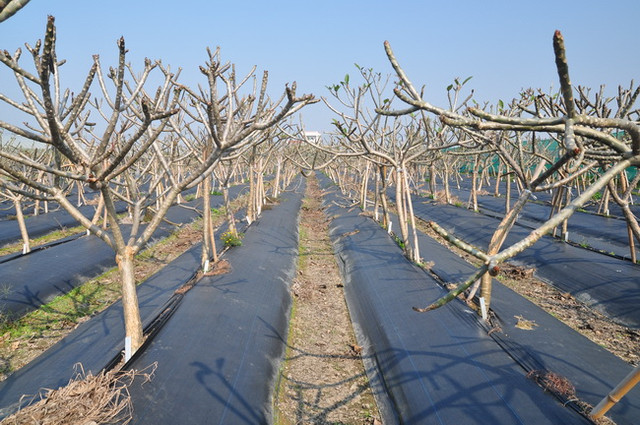 植物和動物最大的不同就是動物會走動,而植物不會動,所以植物種在那裡就得順應當地的氣候,反過來說氣候是影響植物生長的主要因子。舉去年來說,在下半年雨水超多,田裡的雞蛋花因土壤浸水鬆軟,常常倒伏,所以花很多心力把植株扶正。之前想說有些倒伏就順其自然,但聽了格友建議,趁土軟時扶正,因為種植較密,傾斜倒伏不利走動和工作。