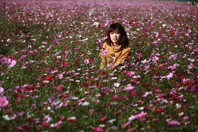 其實拍花海和人好像很簡單,尤其是現在人手一機,連手機都可以拍的很好,但有的照片要靠構圖,並不是沒一個人可以拍出來的。拍花海主要的重點就是背景要單純,方法有二,第一是由上往下拍,使整個人都在花海裡,另一是由低往上拍,使人的背景在天空。另外要注意的是前景的利用,人的前面要有花,有時可以靠近花朵拍,使花朵變大。